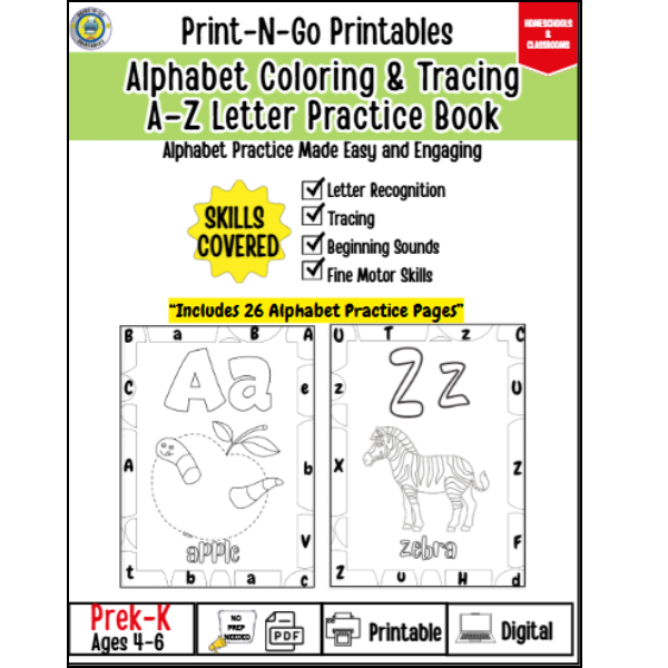 Alphabet Coloring & Tracing A-Z Letter Practice Book | 29 pgs | |Downloadable PDF| Prek-K - $2.50